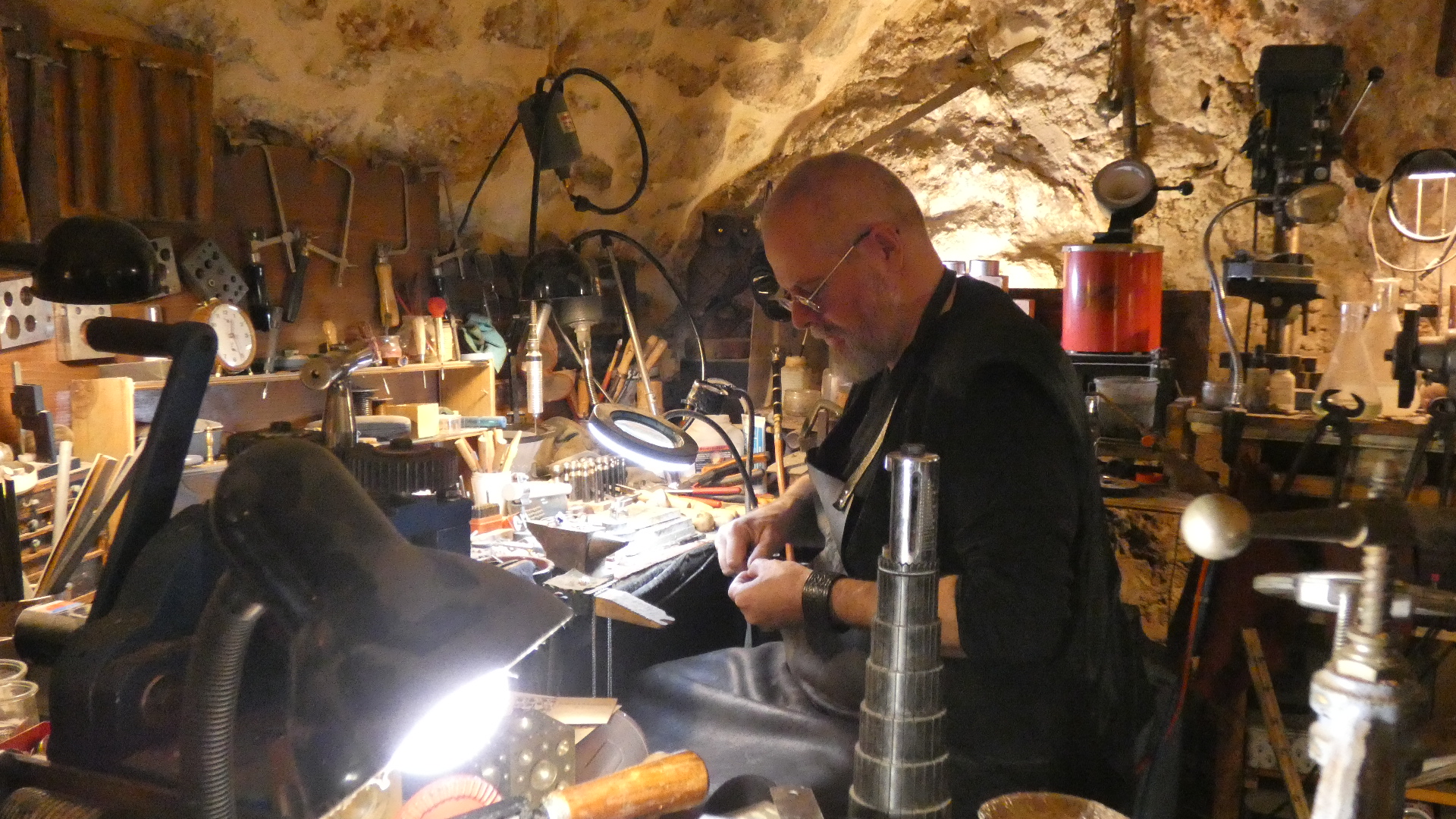 Un petit atelier de joaillerie au coeur du beau village de Saint-Guilhem-le-Désert. L'amical et poli M. Schambacher connaît son métier et propose des bijoux en argent faits à la main à un prix équitable. Reviendra! au revoir
